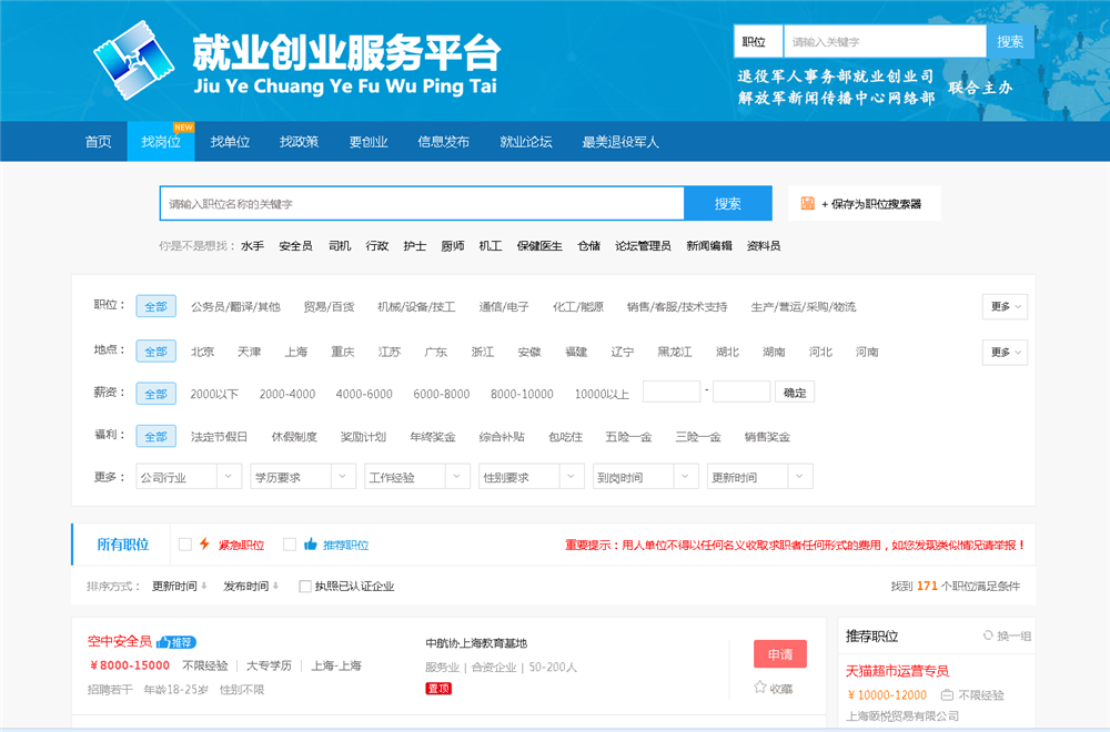查詢相關(guān)招聘信息請點擊:退役軍人就業(yè)創(chuàng)業(yè)網(wǎng)