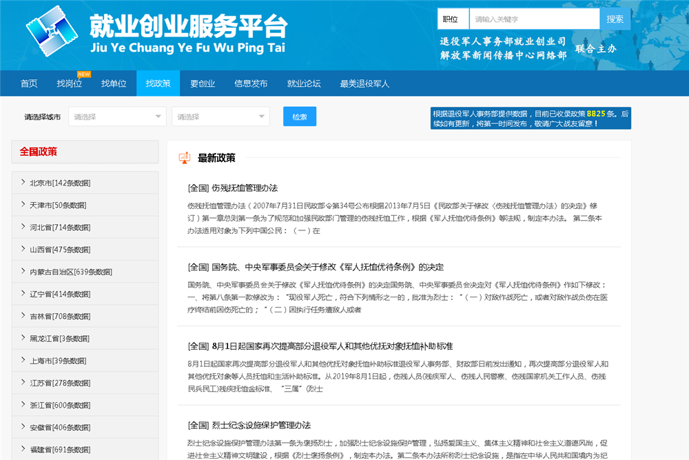 “找政策”主要顯示全國及各省市最新退役軍人相關(guān)政策規(guī)定