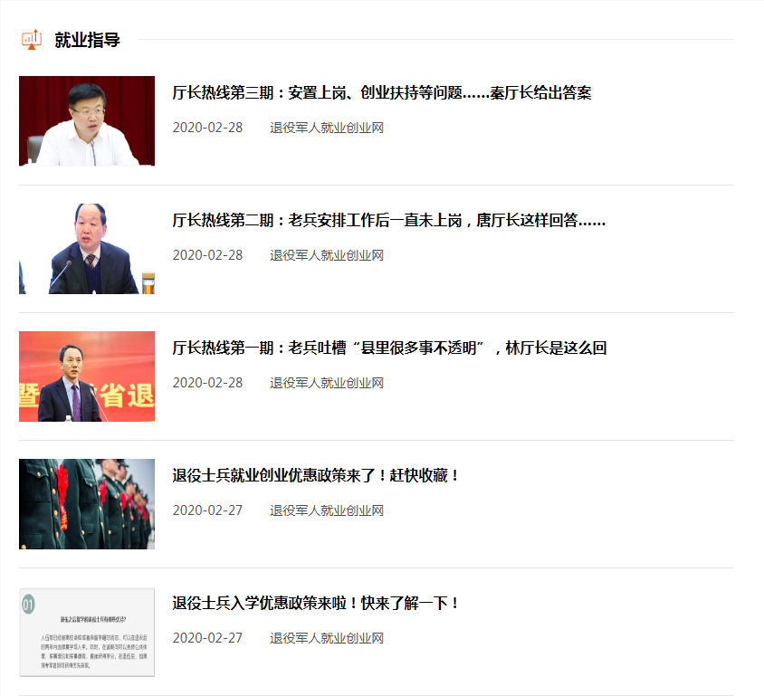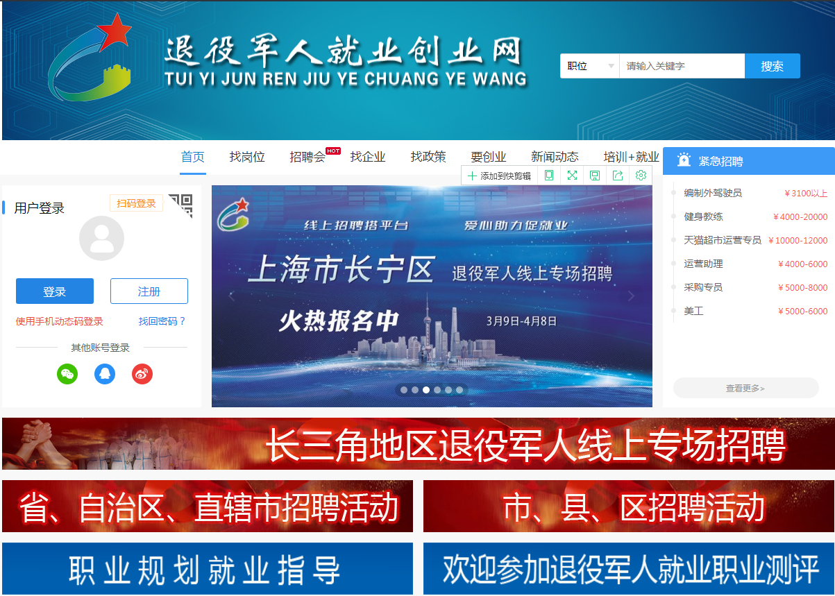 退役軍人就業(yè)創(chuàng)業(yè)網(wǎng)首頁截圖