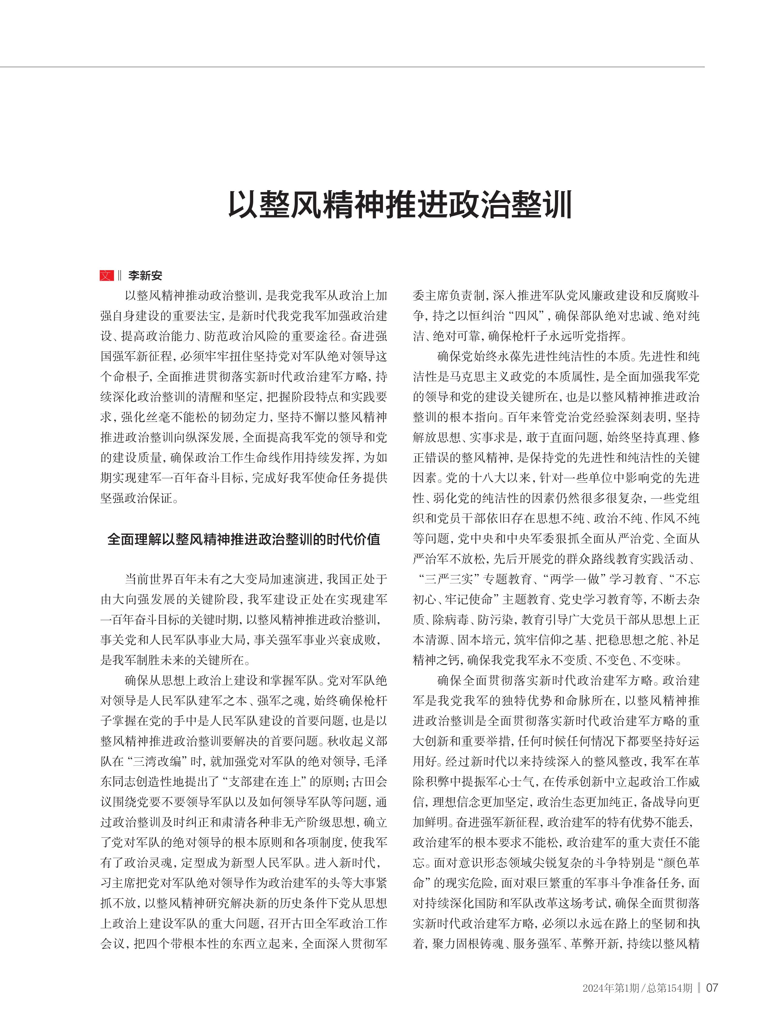 以整風精神推進政治整訓