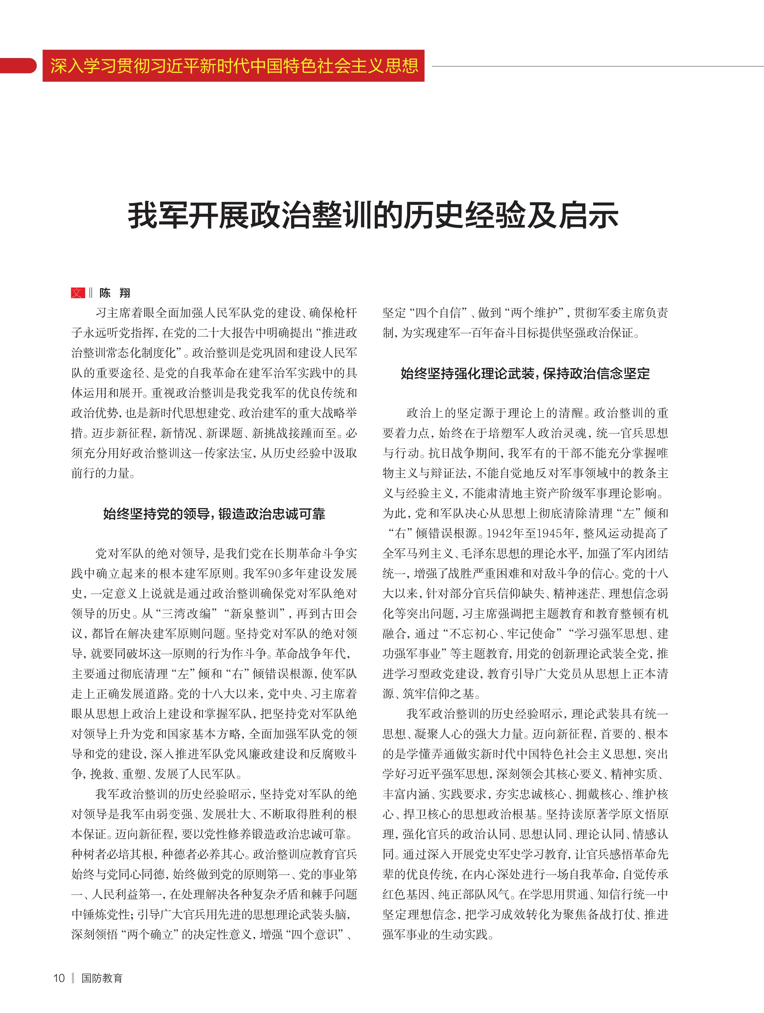 我軍開展政治整訓(xùn)的歷史經(jīng)驗及啟示