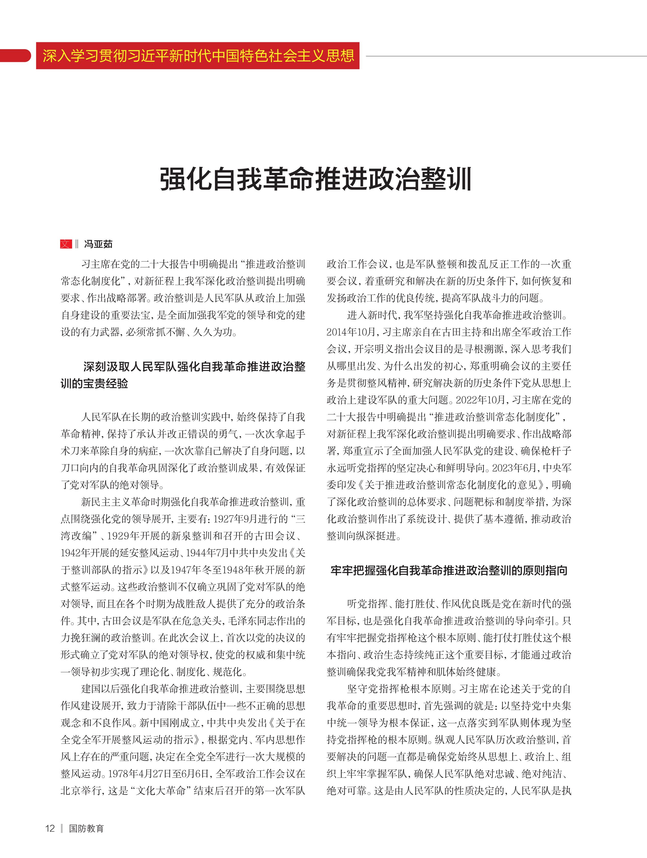 強(qiáng)化自我革命推進(jìn)政治整訓(xùn)