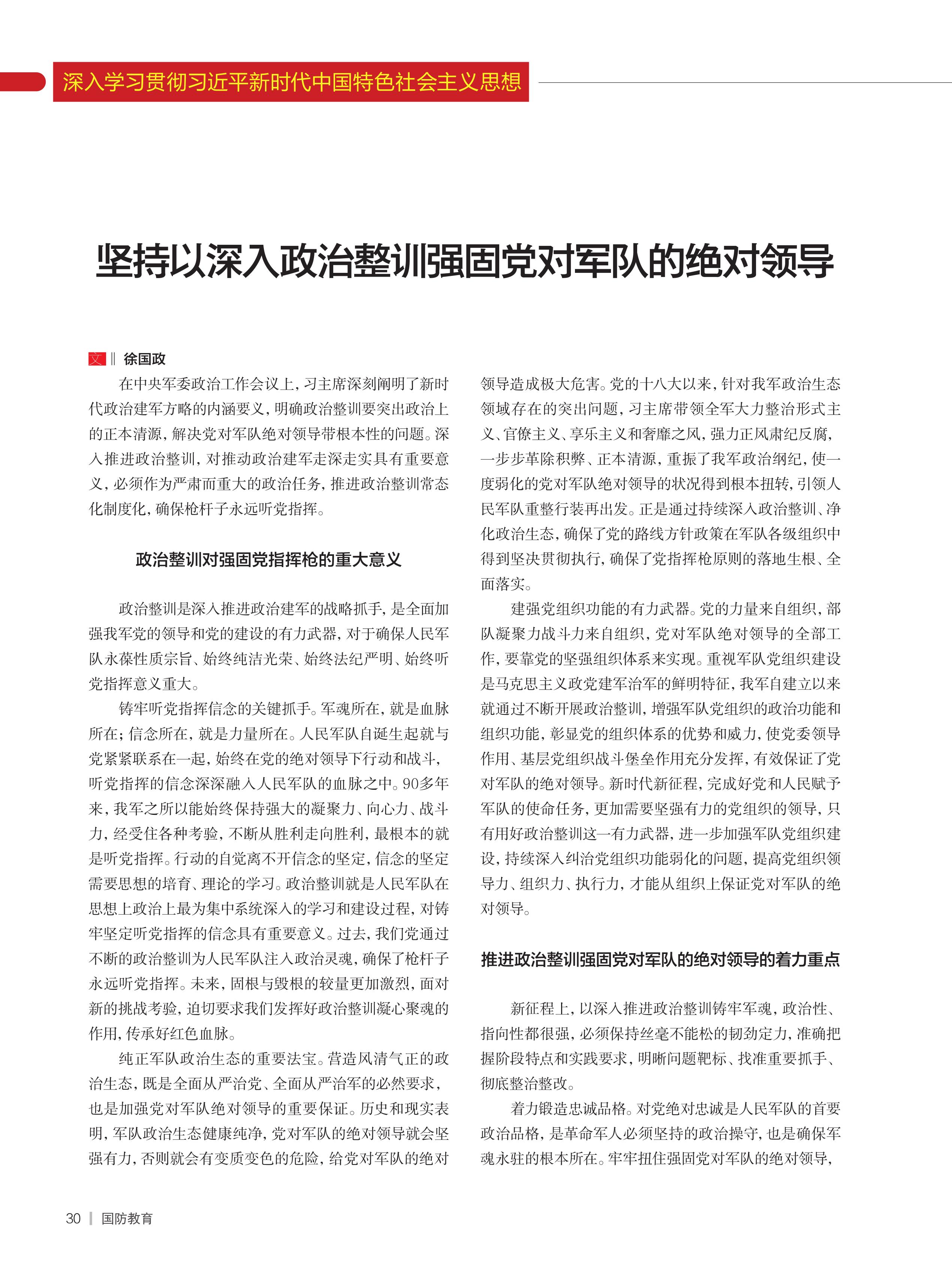 堅(jiān)持以深入政治整訓(xùn)強(qiáng)固黨對(duì)軍隊(duì)的絕對(duì)領(lǐng)導(dǎo)