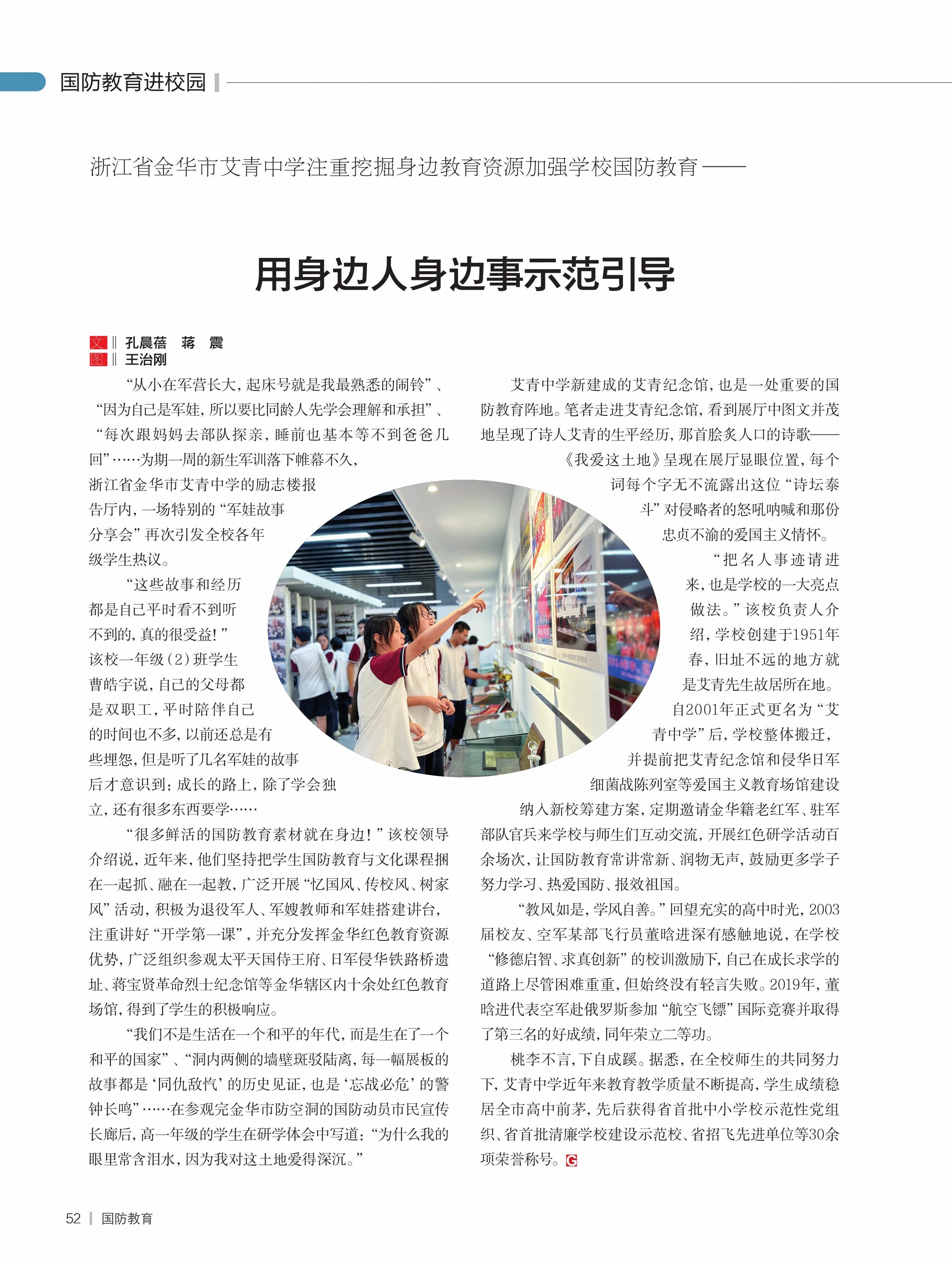 浙江省金華市艾青中學(xué)注重挖掘身邊教育資源加強(qiáng)學(xué)校國防教育 ——