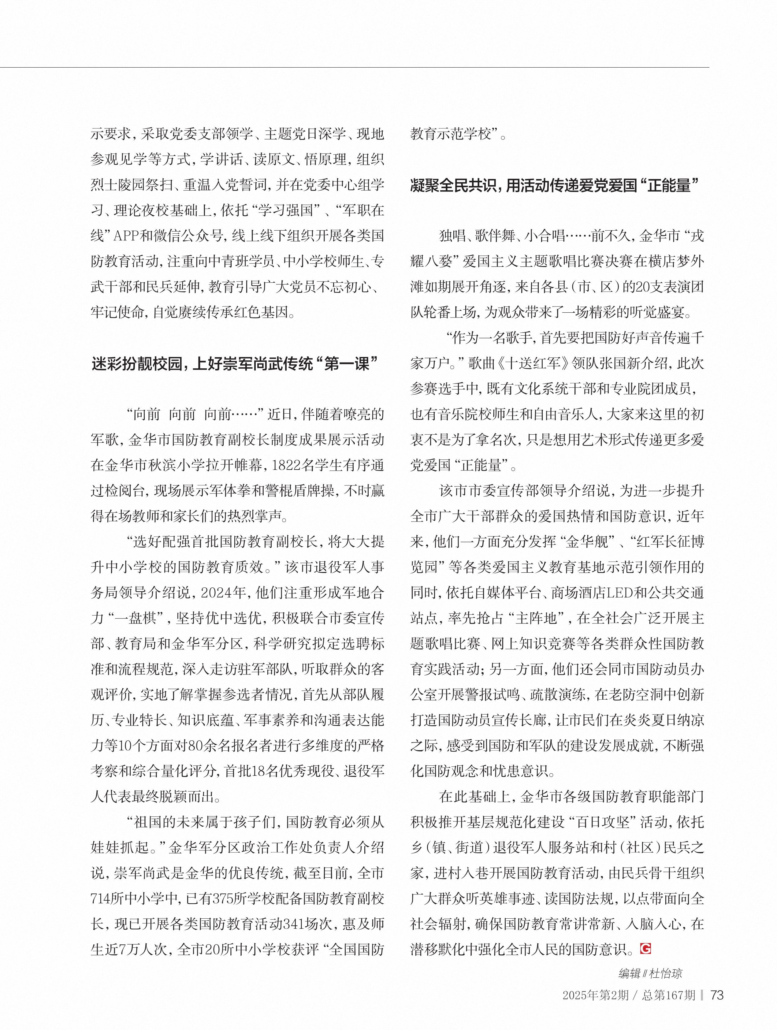 浙江省金華市深入貫徹落實(shí)新修訂的國防教育法,推進(jìn)全民國防教育走深走實(shí)——