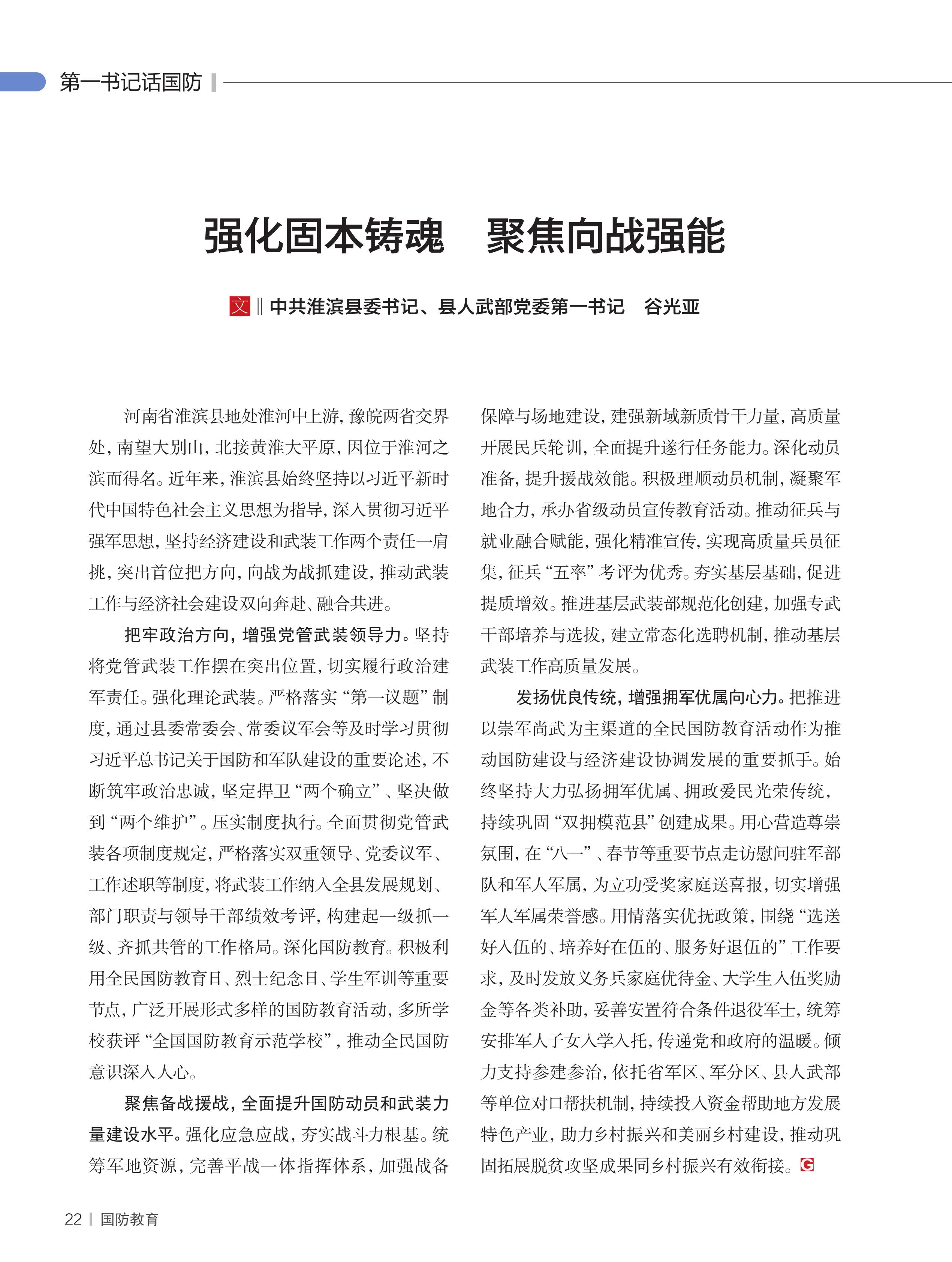 作者:中共淮濱縣委書記 縣人武部黨委第一書記? 谷光亞