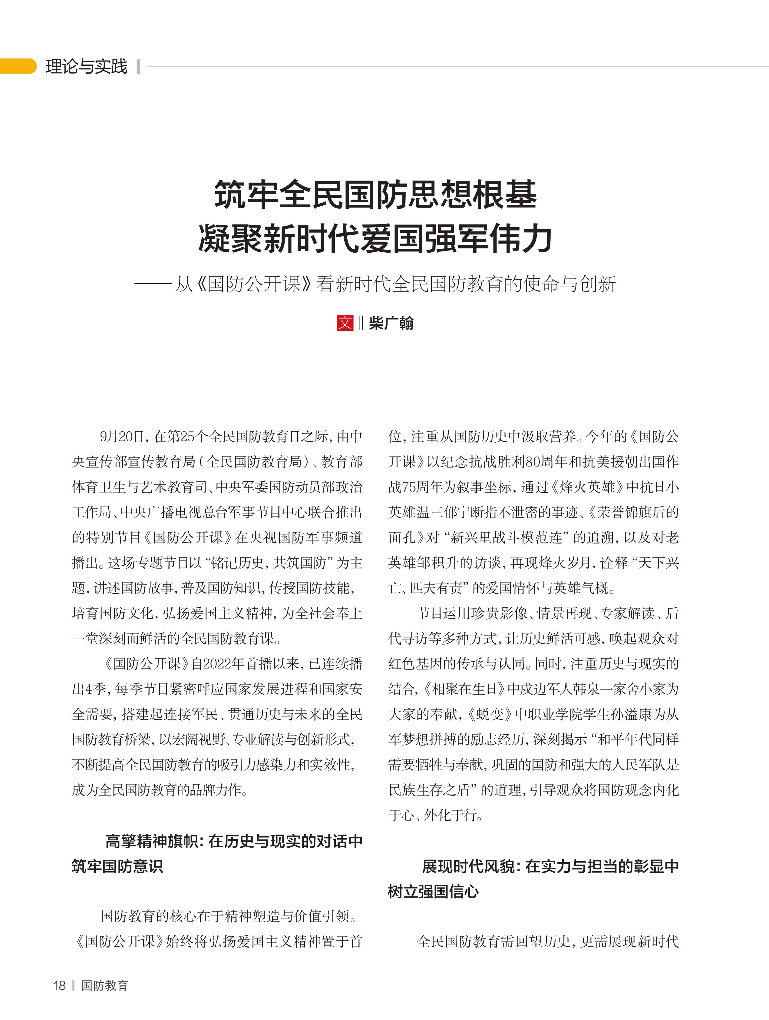 ——從《國防公開課》看新時(shí)代全民國防教育的使命與創(chuàng)新