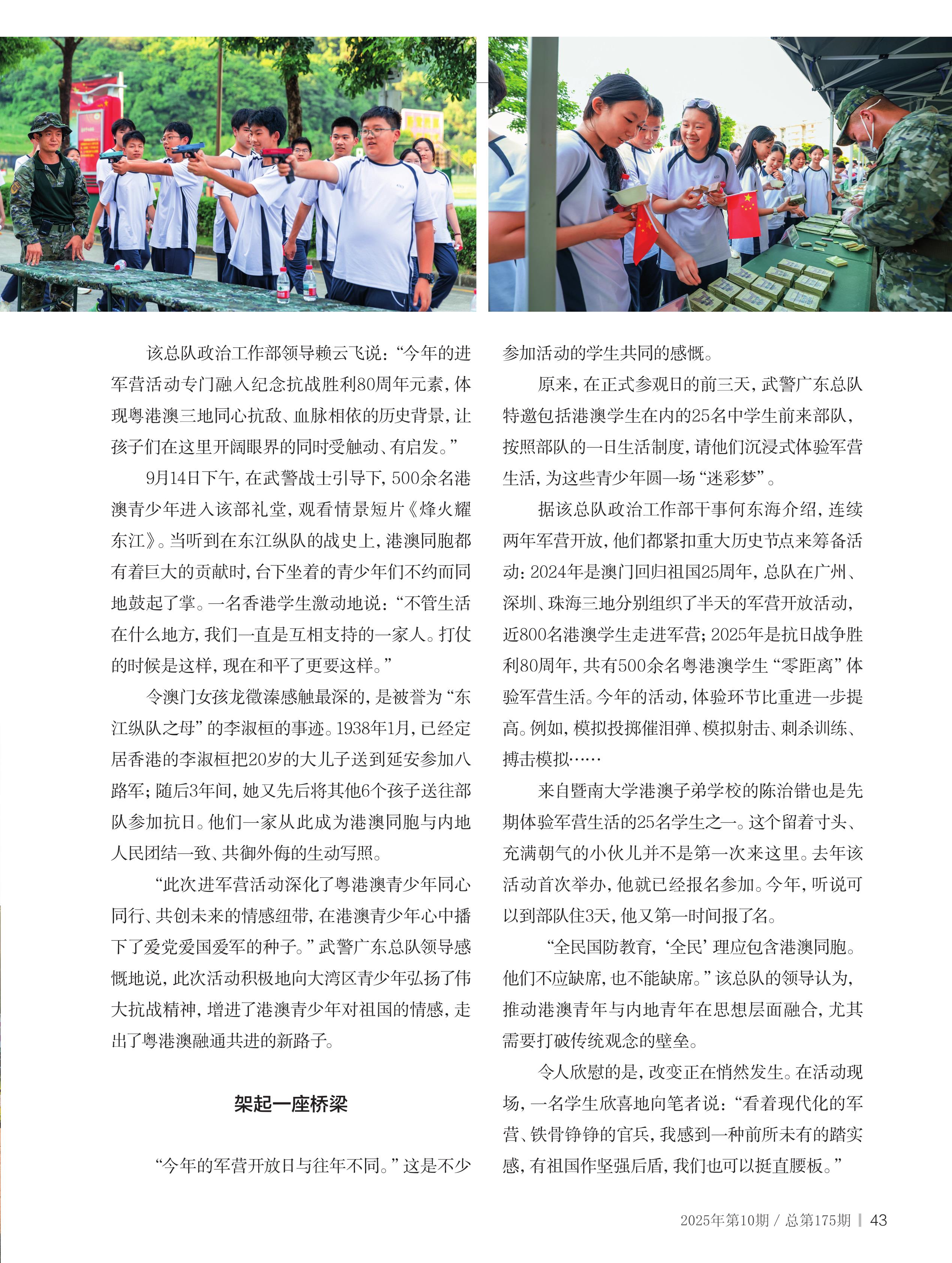 武警廣東總隊開展紀(jì)念抗戰(zhàn)勝利80周年暨港澳青少年進(jìn)軍營活動——