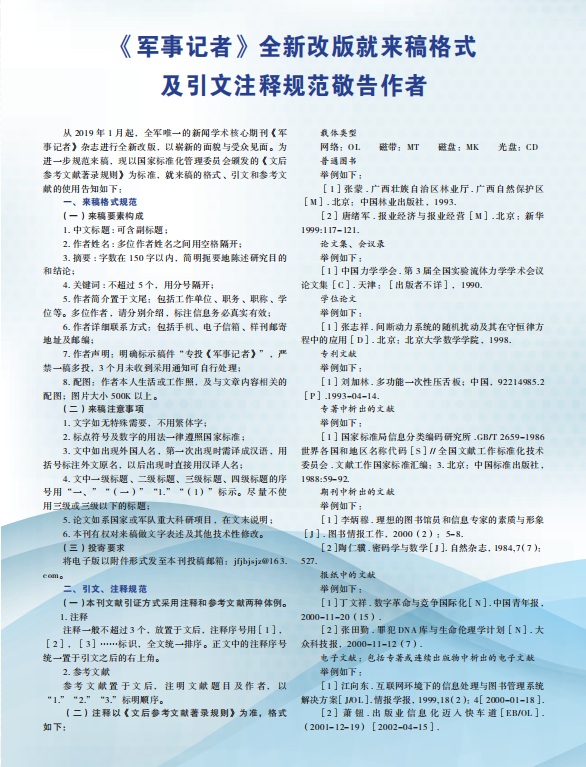 封五 《軍事記者》全新改版就來稿格式及引文注釋規(guī)范敬告作者