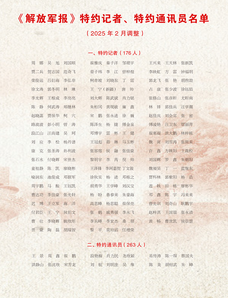 封六、七:《解放軍報(bào)》特約記者、特約通訊員名單