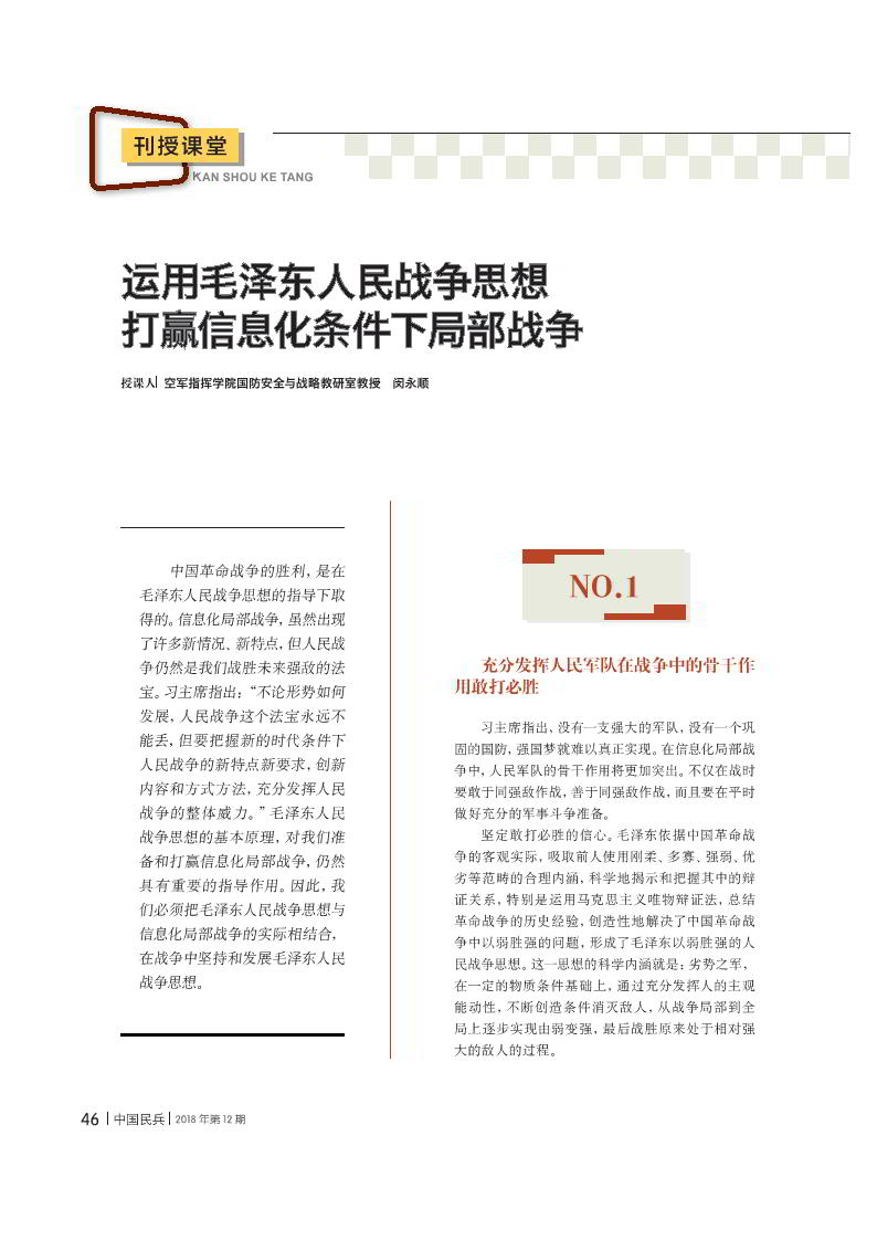 運(yùn)用毛澤東人民戰(zhàn)爭(zhēng)思想 打贏信息化條件下局部戰(zhàn)爭(zhēng)