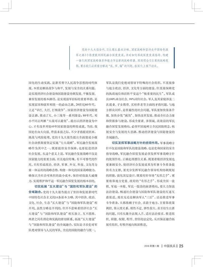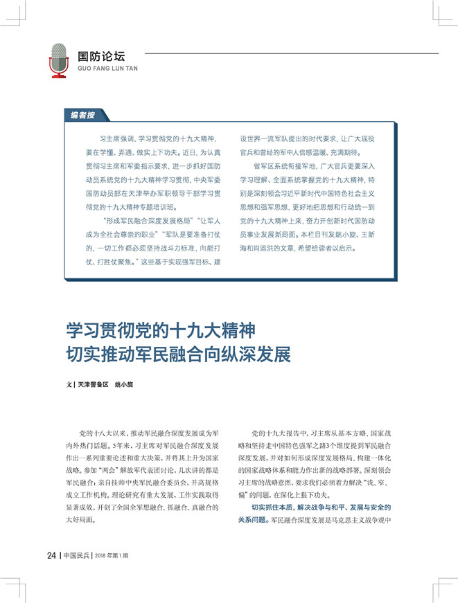 學(xué)習(xí)貫徹黨的十九大 切實(shí)推動(dòng)軍民融合向縱深發(fā)展