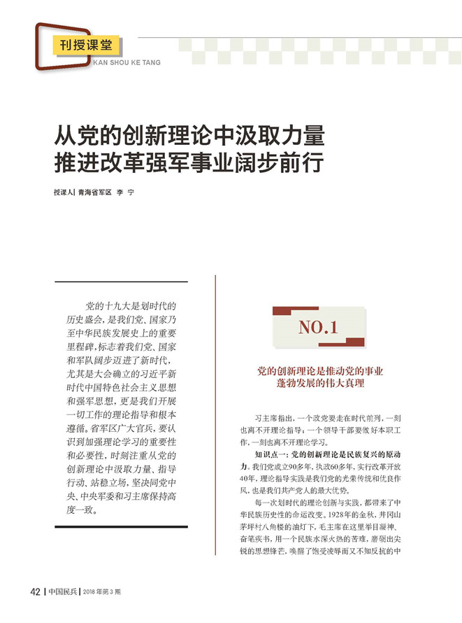 從黨的創(chuàng)新理論中汲取力量 推進(jìn)改革強(qiáng)軍事業(yè)闊步前行