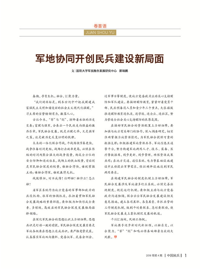 軍地協(xié)同開(kāi)創(chuàng)民兵建設(shè)新局面