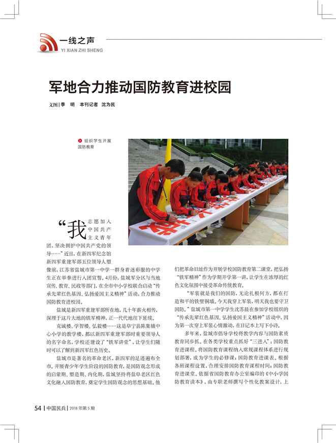 軍地合力推動國防教育進(jìn)校園