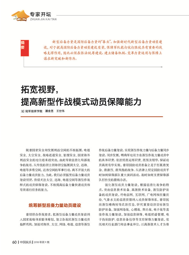 拓寬視野,提高新型作戰(zhàn)模式動(dòng)員保障能力