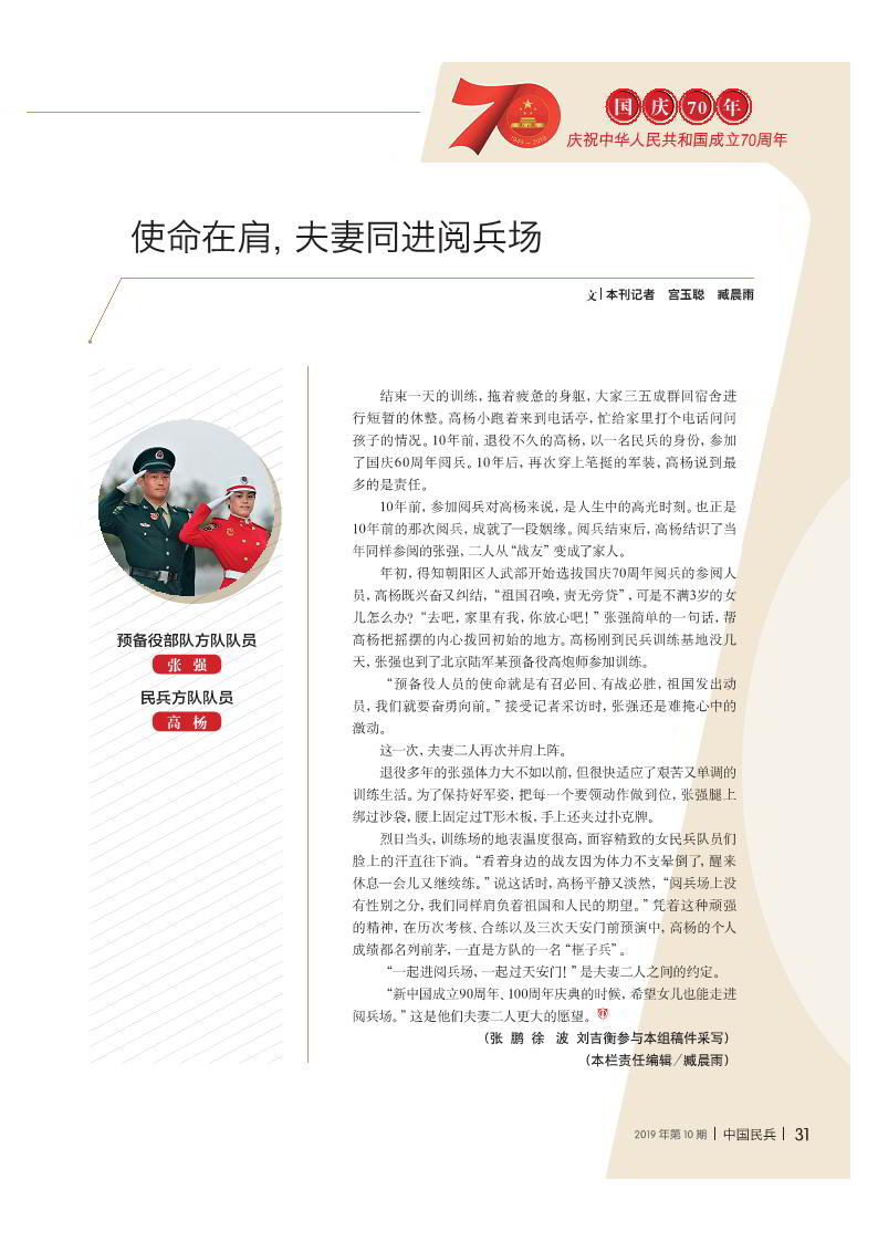 使命在肩,夫妻同進閱兵場