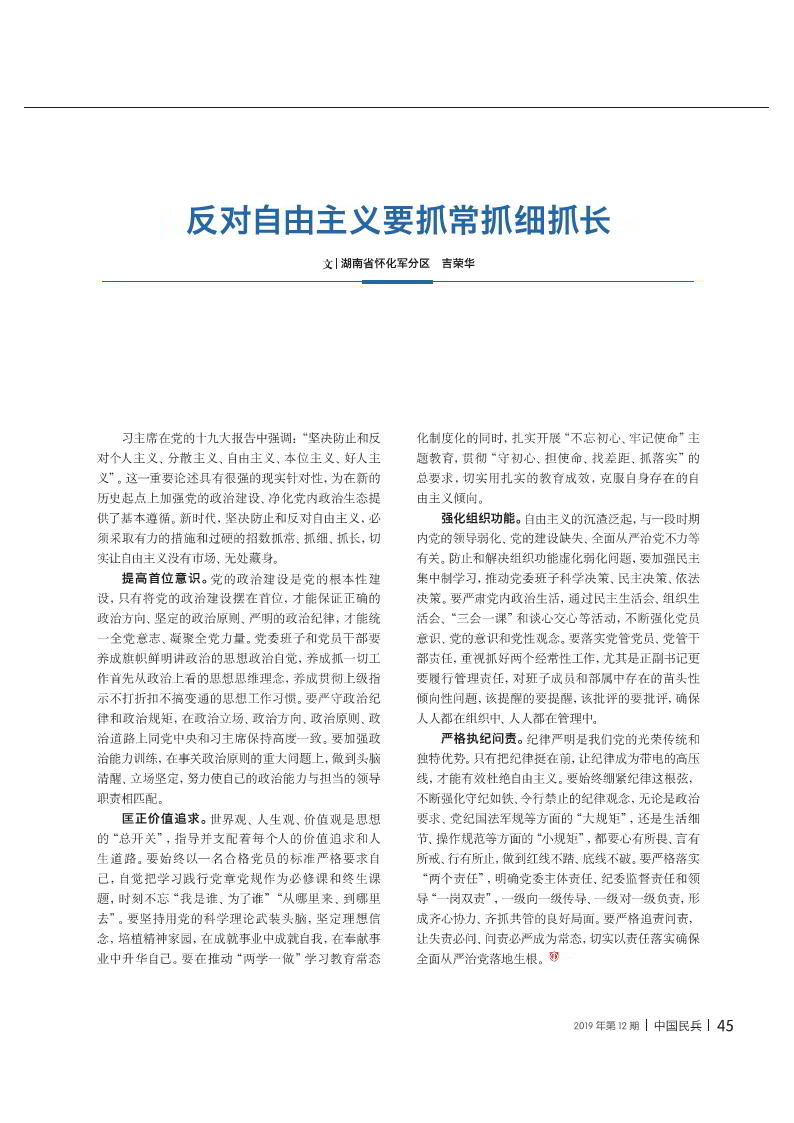 反對(duì)自由主義要抓常抓細(xì)抓長(zhǎng)