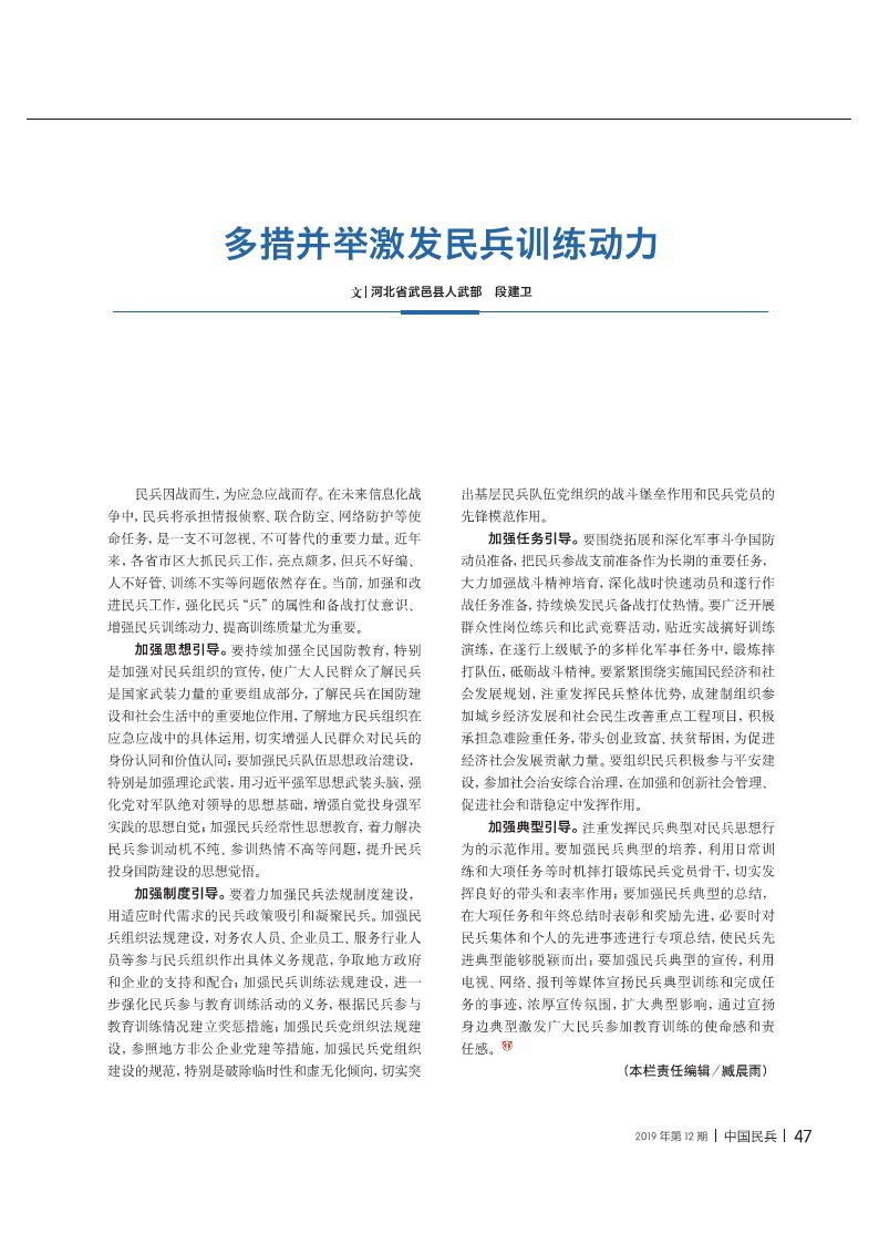 多措并舉激發(fā)民兵訓(xùn)練動(dòng)力