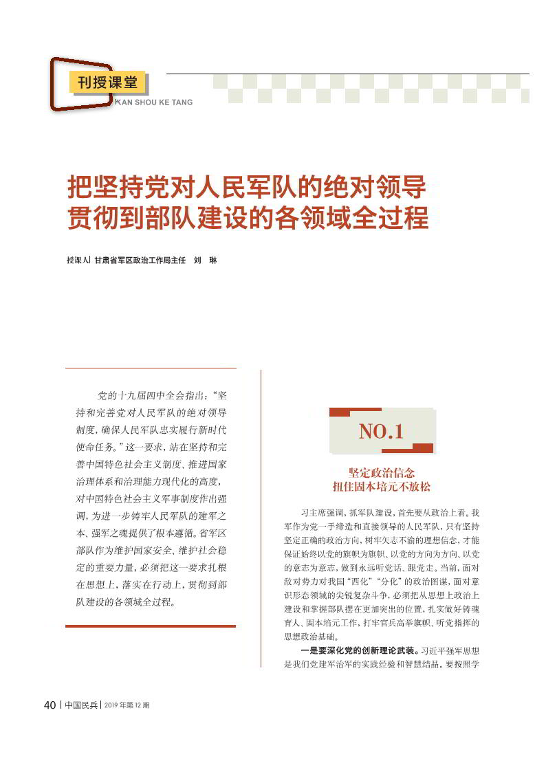 把堅持黨對人民軍隊的絕對領(lǐng)導(dǎo)貫徹到部隊建設(shè)的各領(lǐng)域全過程