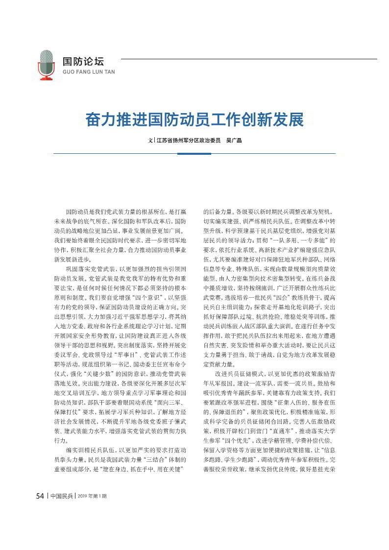 奮力推進(jìn)國(guó)防動(dòng)員工作創(chuàng)新發(fā)展
