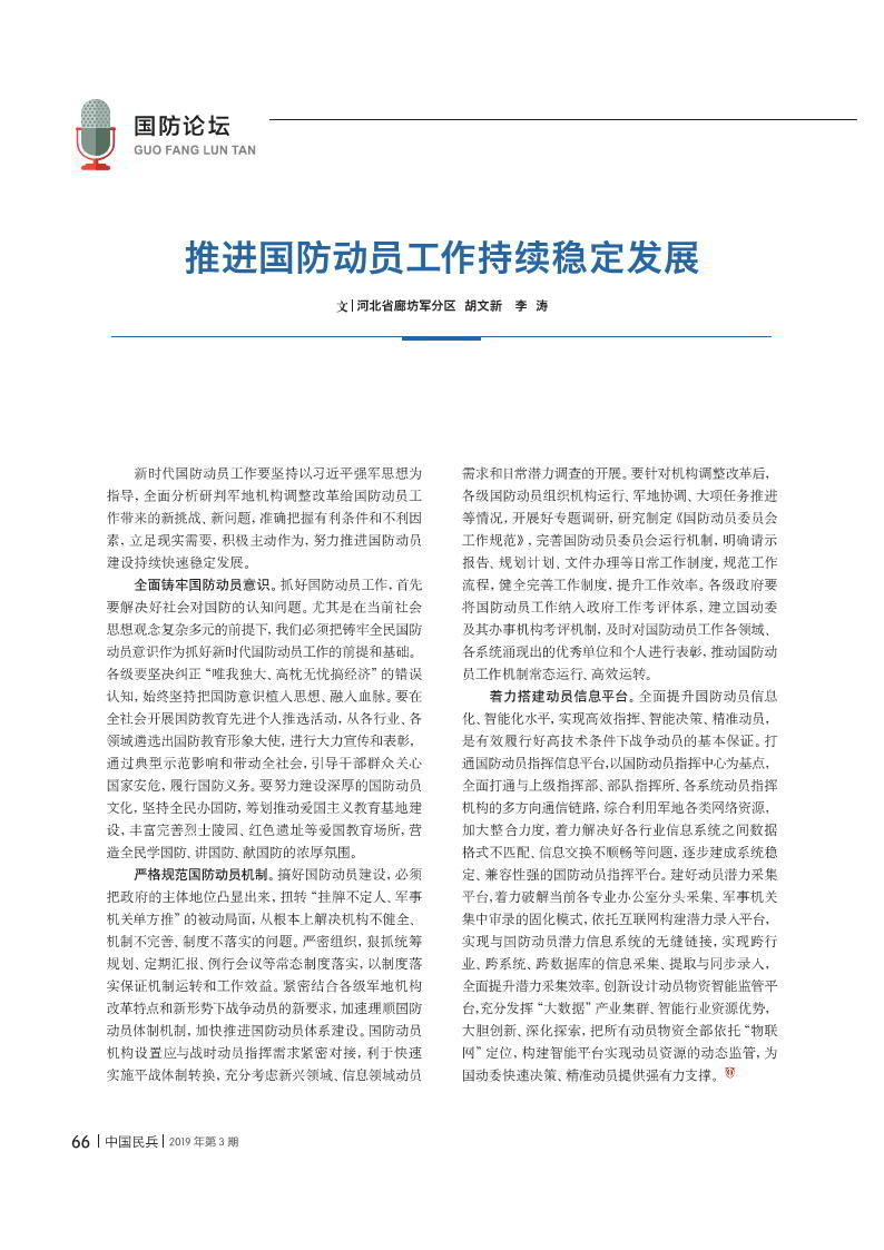 推進(jìn)國(guó)防動(dòng)員工作持續(xù)穩(wěn)定發(fā)展