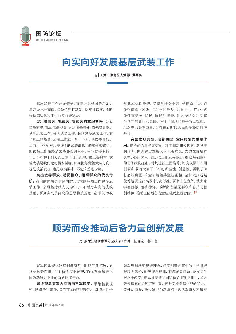 向?qū)嵪蚝冒l(fā)展基層武裝工作