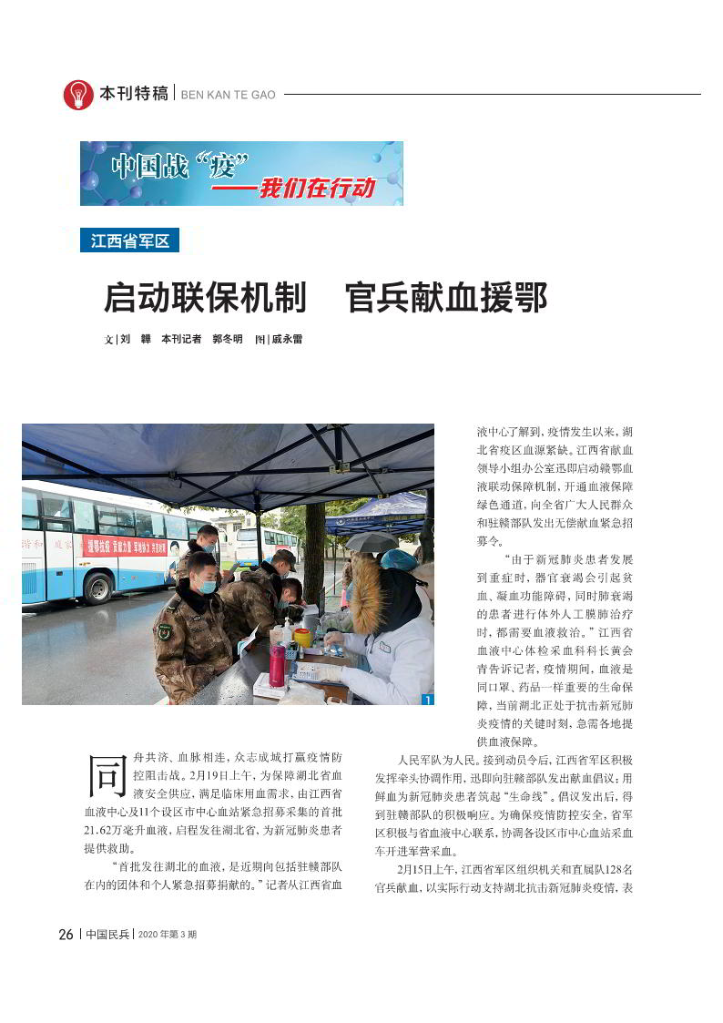 啟動(dòng)聯(lián)保機(jī)制 官兵獻(xiàn)血援鄂