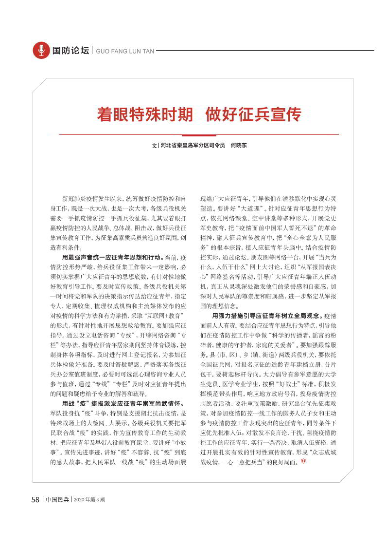 著眼特殊時(shí)期 做好征兵宣傳
