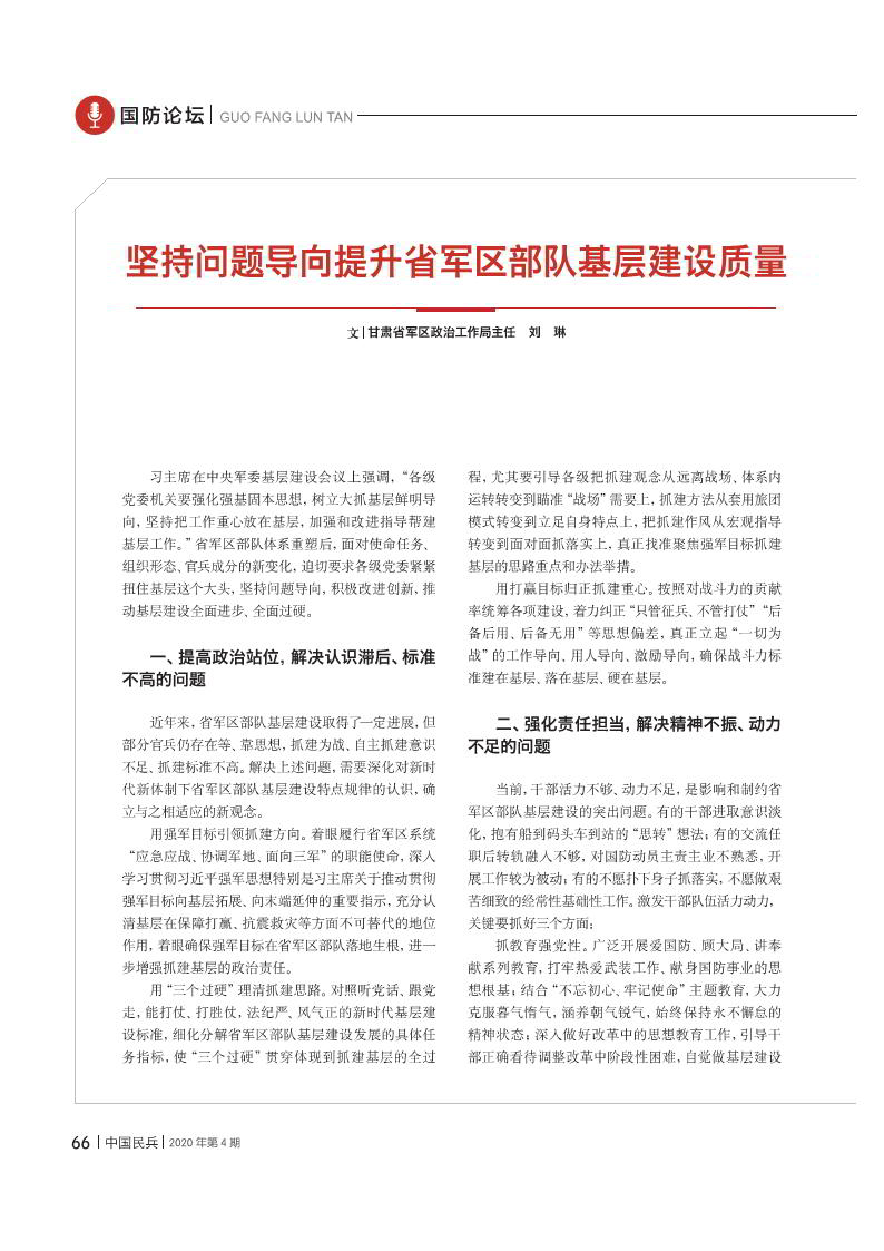堅(jiān)持問(wèn)題導(dǎo)向提升省軍區(qū)部隊(duì)基層建設(shè)質(zhì)量
