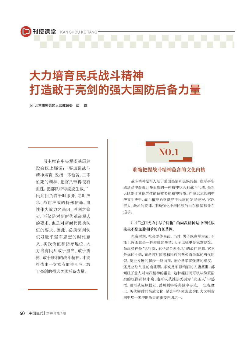大力培育民兵戰(zhàn)斗精神 打造敢于亮劍的強(qiáng)大國防后備力量