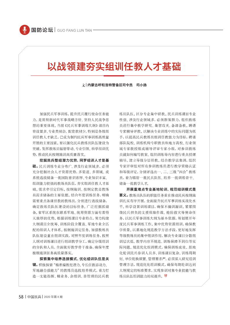 以戰(zhàn)領(lǐng)建夯實組訓(xùn)任教人才基礎(chǔ)