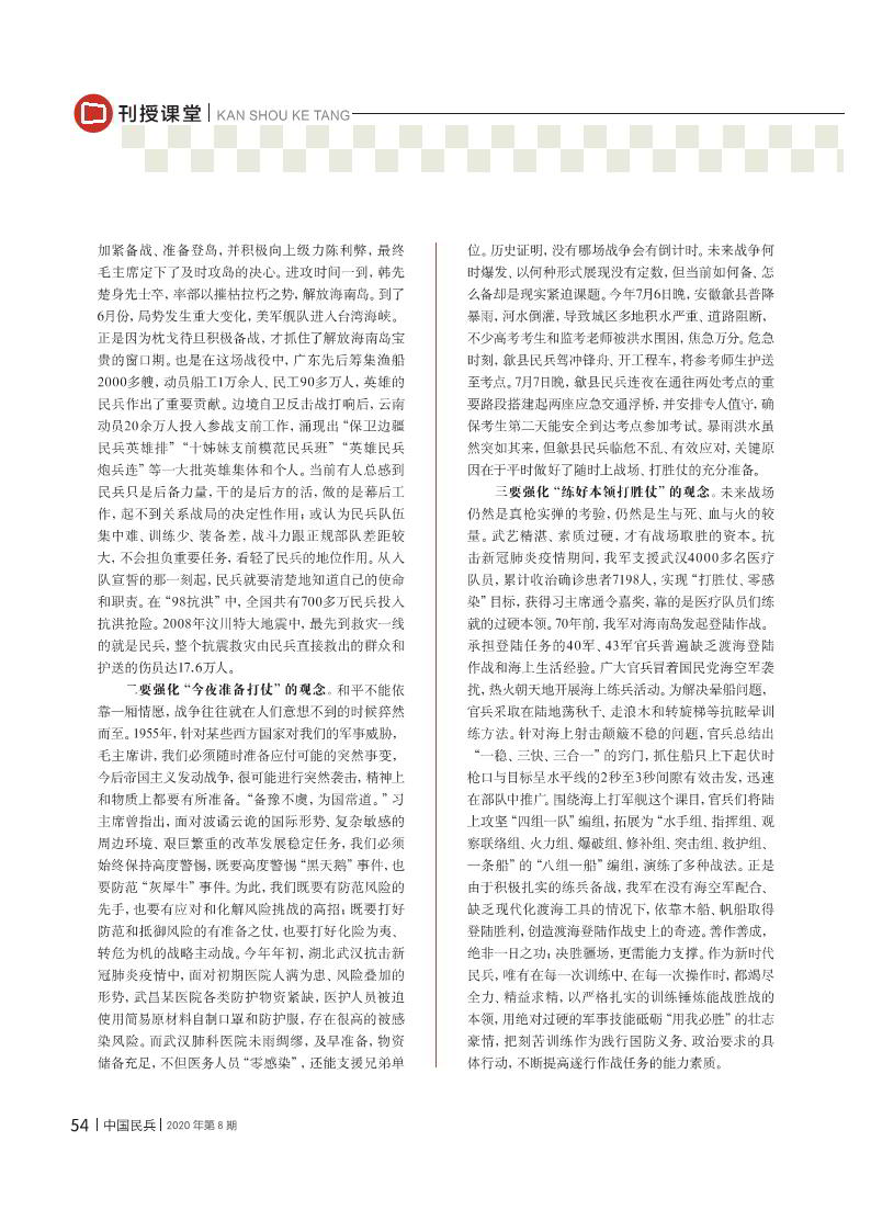 強(qiáng)化新時(shí)代民兵真打?qū)崅溆^念