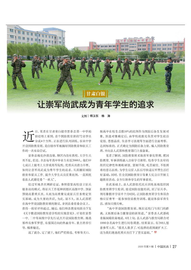 讓崇軍尚武成為青年學(xué)生的追求