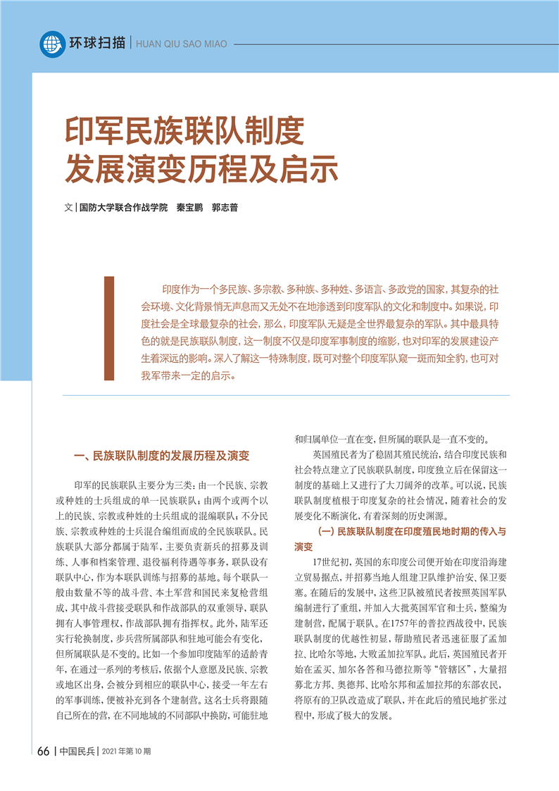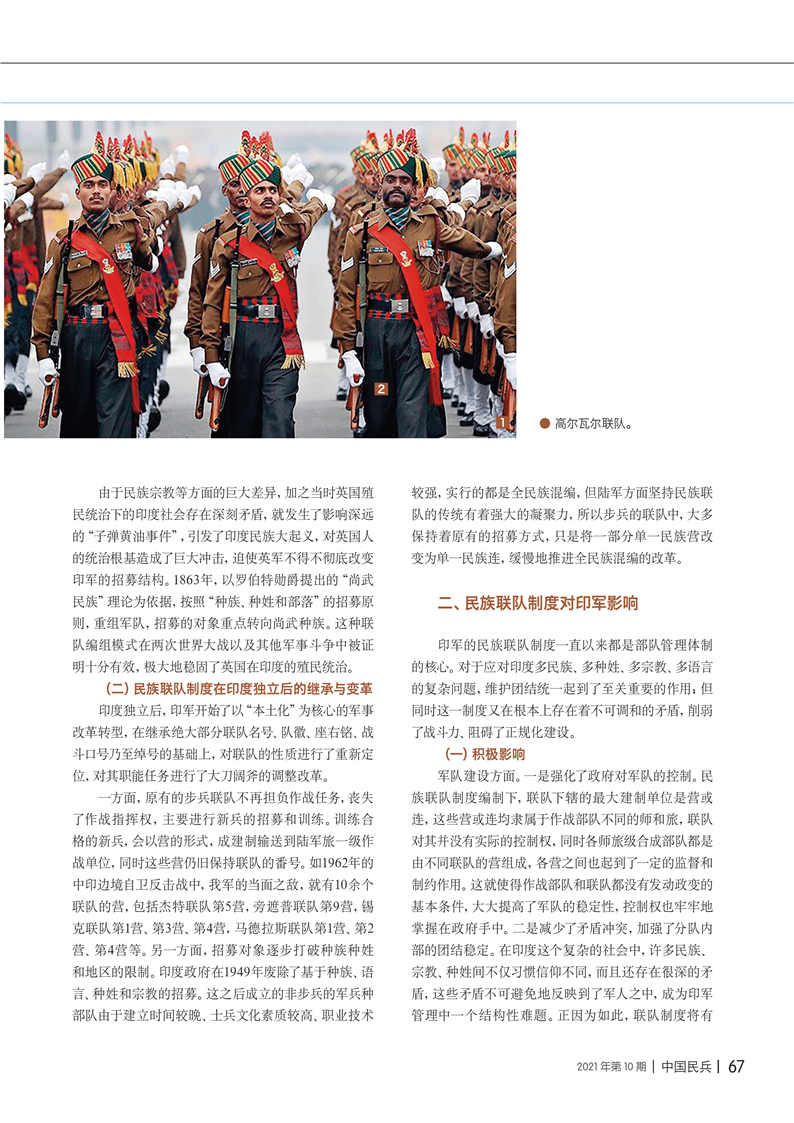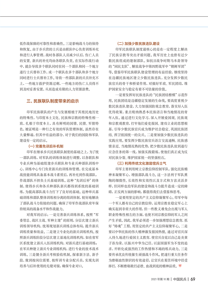 印軍民族聯(lián)隊(duì)制度發(fā)展演變歷程及啟示