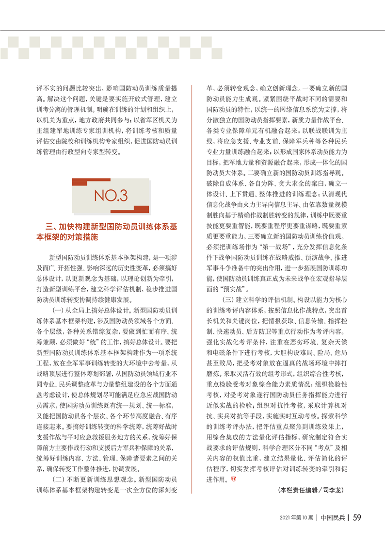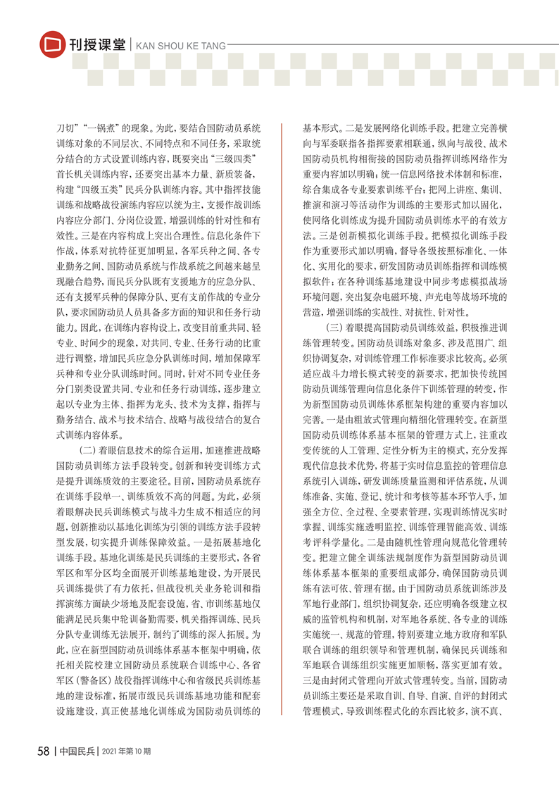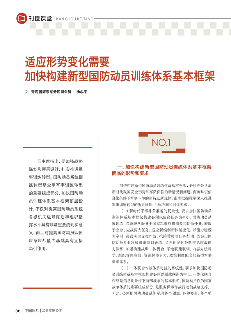 適應形勢變化需要加快構建新型國防動員訓練體系基本框架