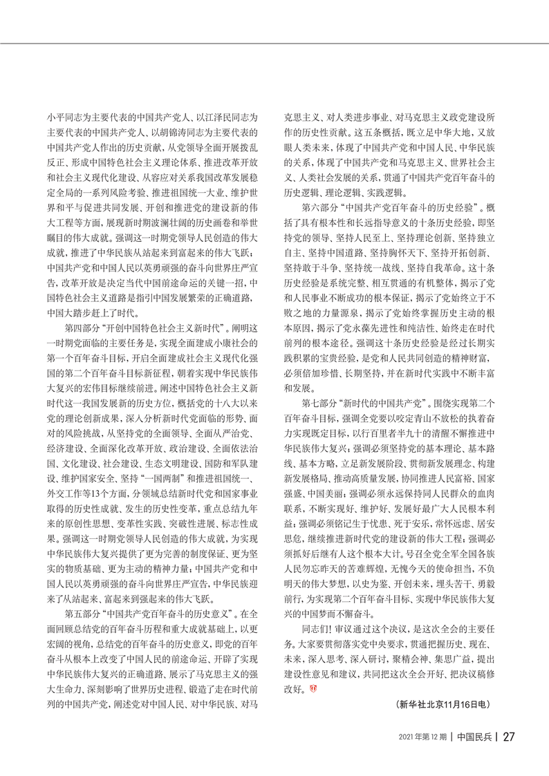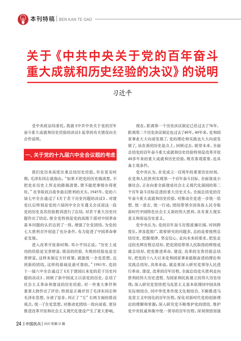 關(guān)于《中共中央關(guān)于黨的百年奮斗重大成就和歷史經(jīng)驗(yàn)的決議》的說(shuō)明
