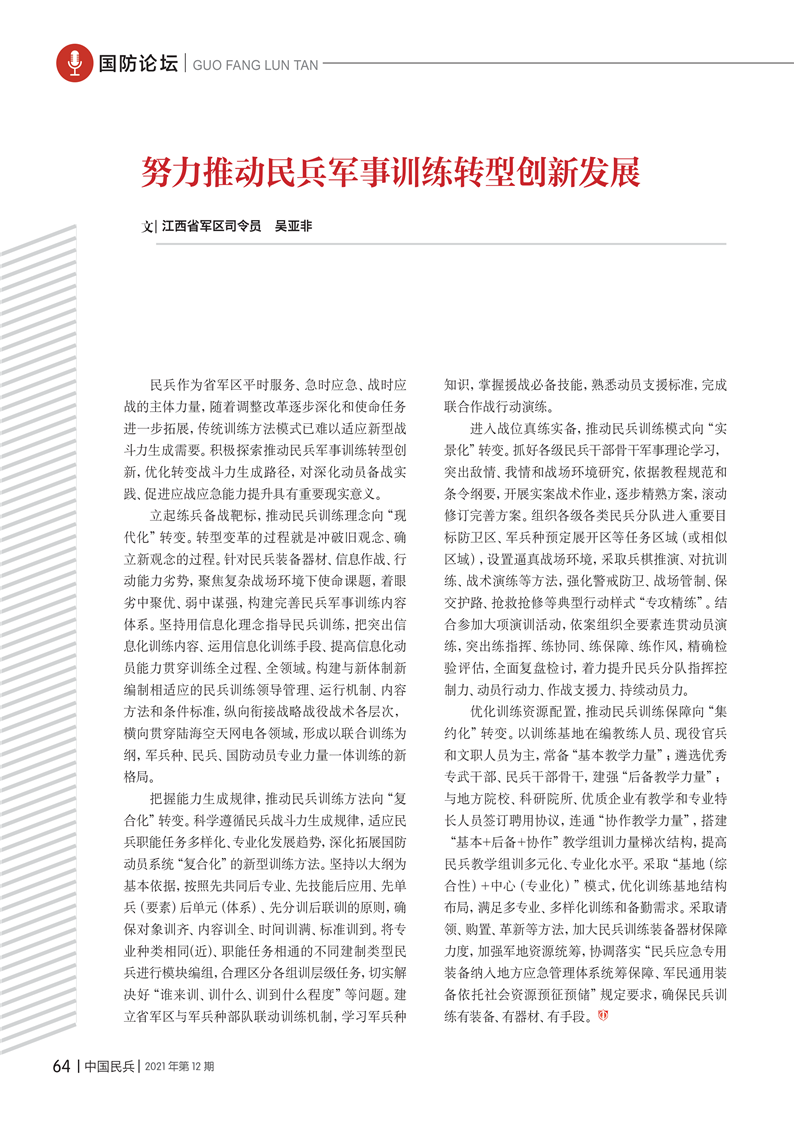 編 輯 出 版:中國民兵雜志社