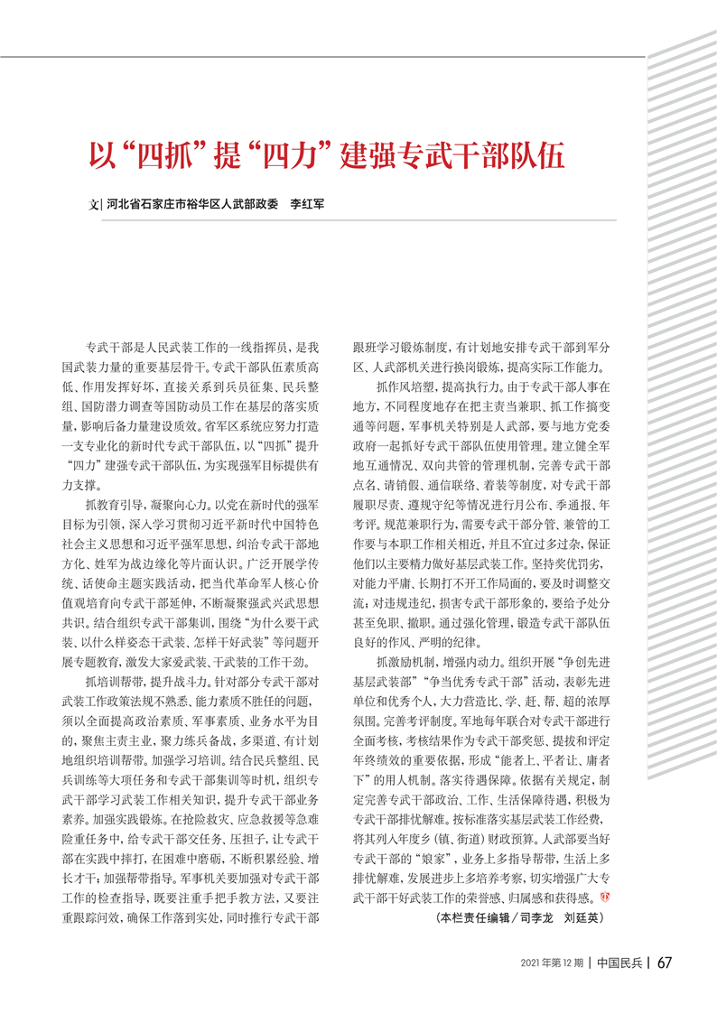 以“四抓”提“四力”建強(qiáng)專武干部隊(duì)伍