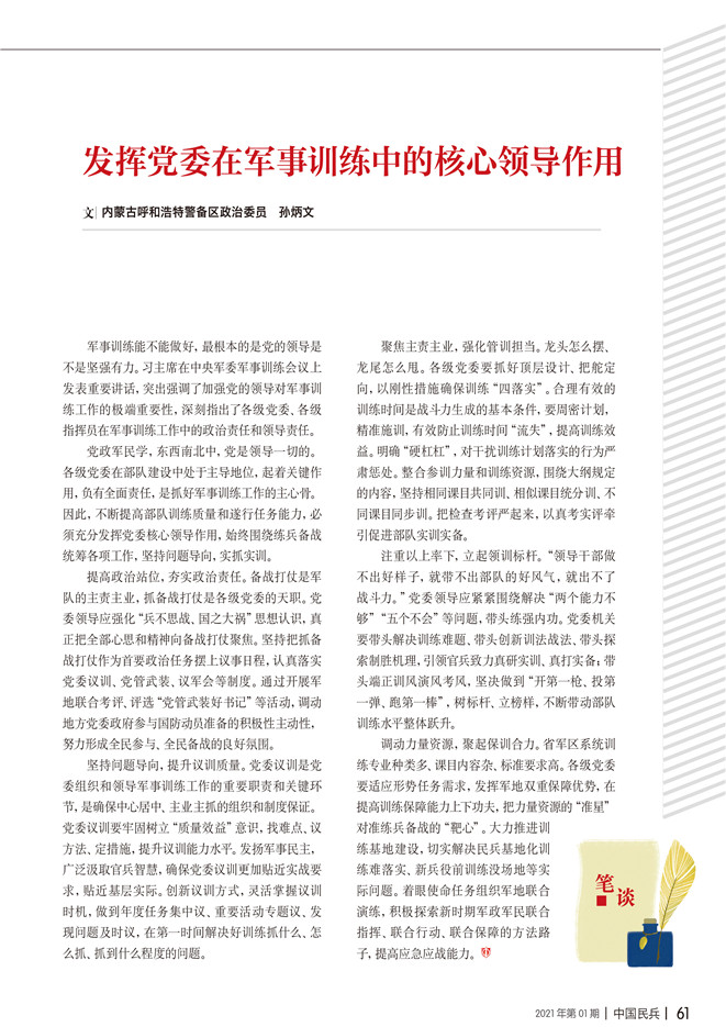 發(fā)揮黨委在軍事訓(xùn)練中的核心領(lǐng)導(dǎo)作用