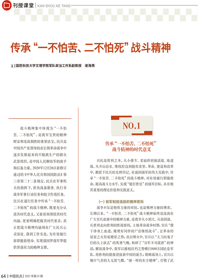 傳承“一不怕苦、二不怕死”戰(zhàn)斗精神
