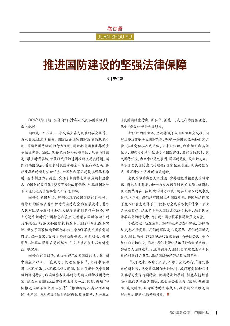 推進(jìn)國防建設(shè)的堅(jiān)強(qiáng)法律保障