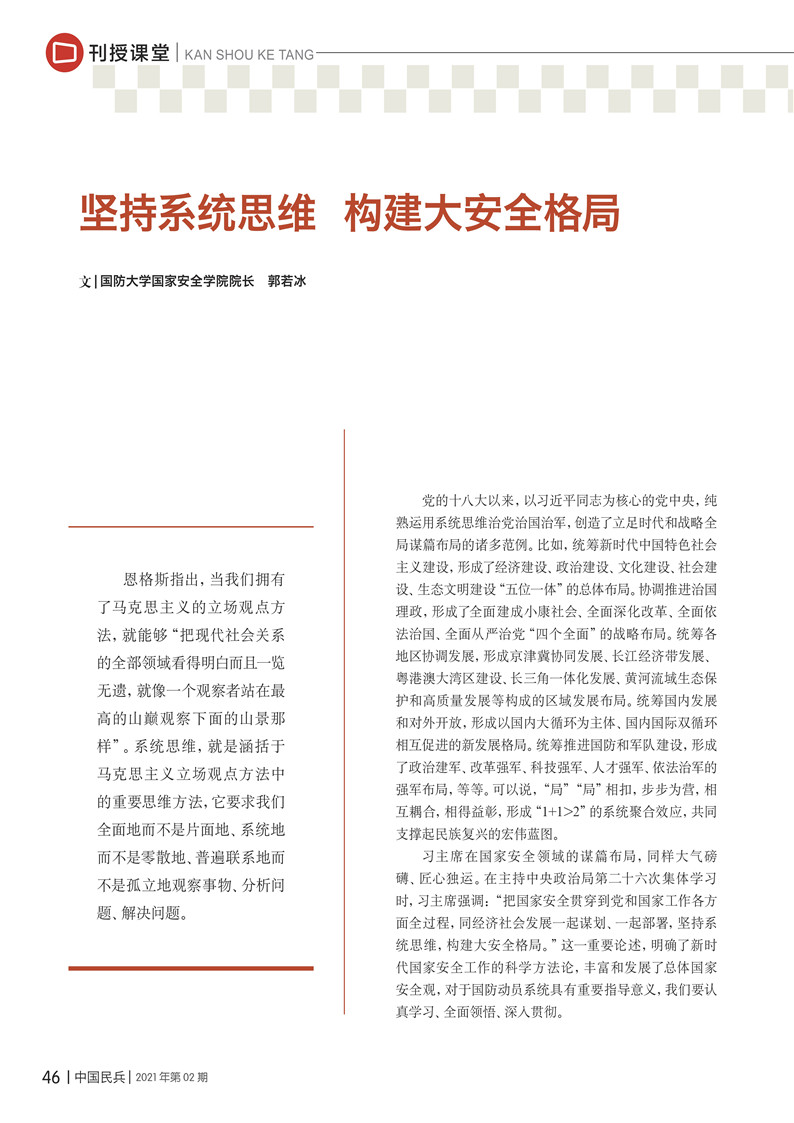 堅(jiān)持系統(tǒng)思維 構(gòu)建大安全格局