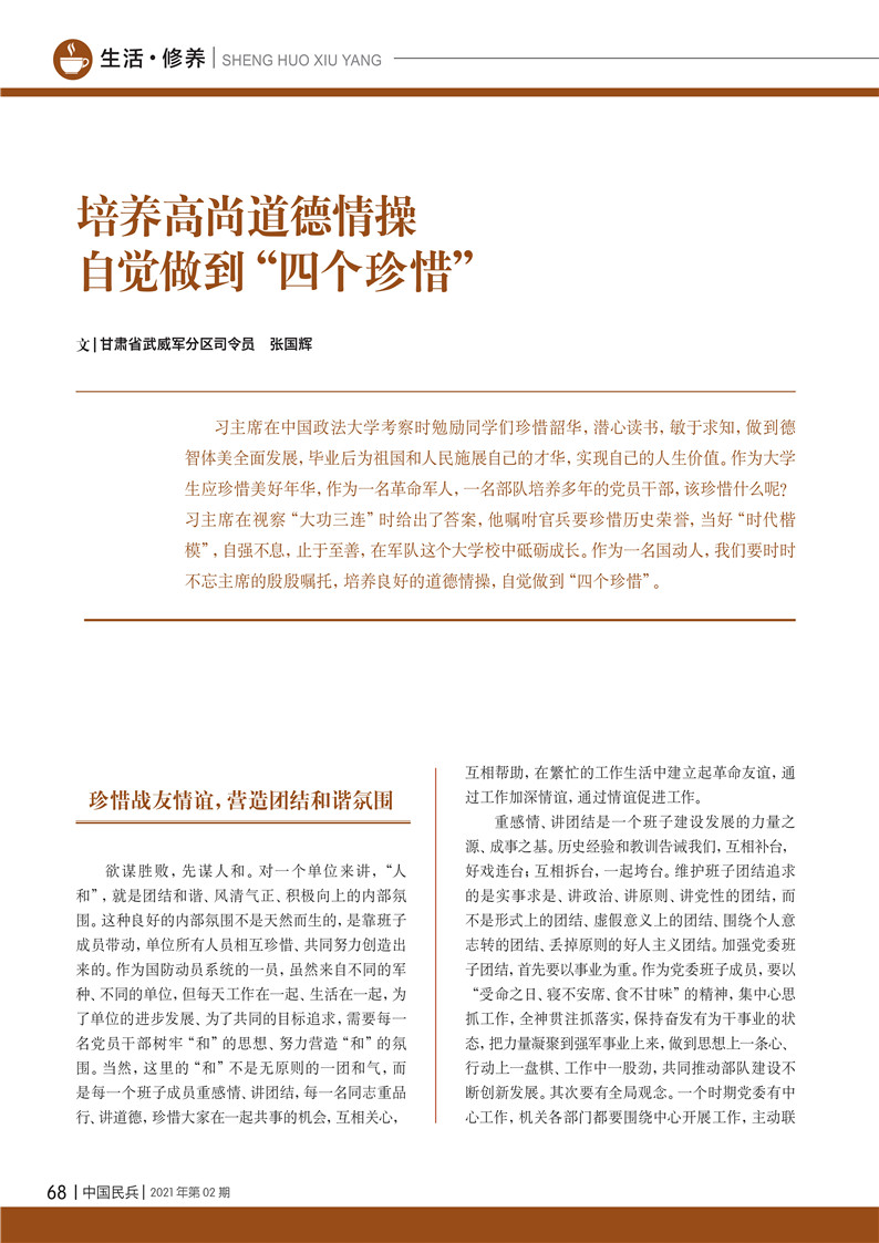 培養(yǎng)高尚道德情操 自覺(jué)做到“四個(gè)珍惜”