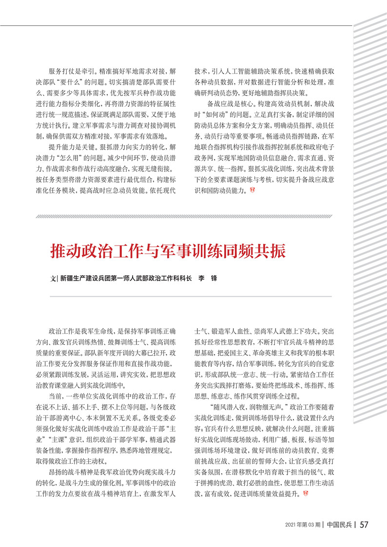 推動政治工作與軍事訓(xùn)練同頻共振