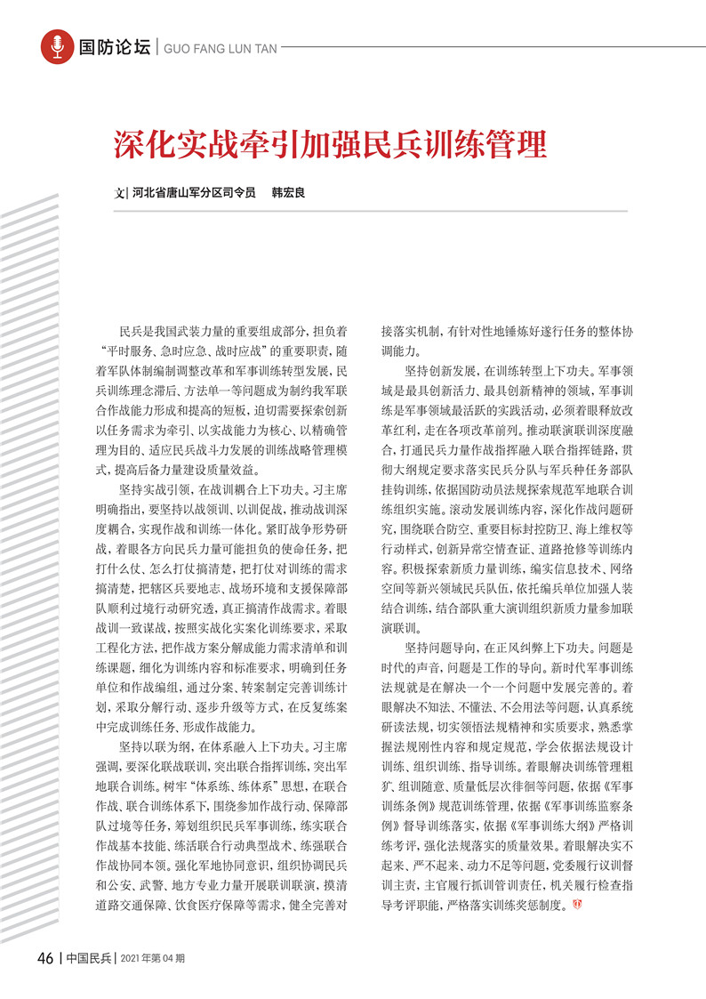 深化實戰(zhàn)牽引加強(qiáng)民兵訓(xùn)練管理