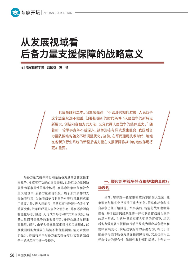 從發(fā)展視域看后備力量支援保障的戰(zhàn)略意義