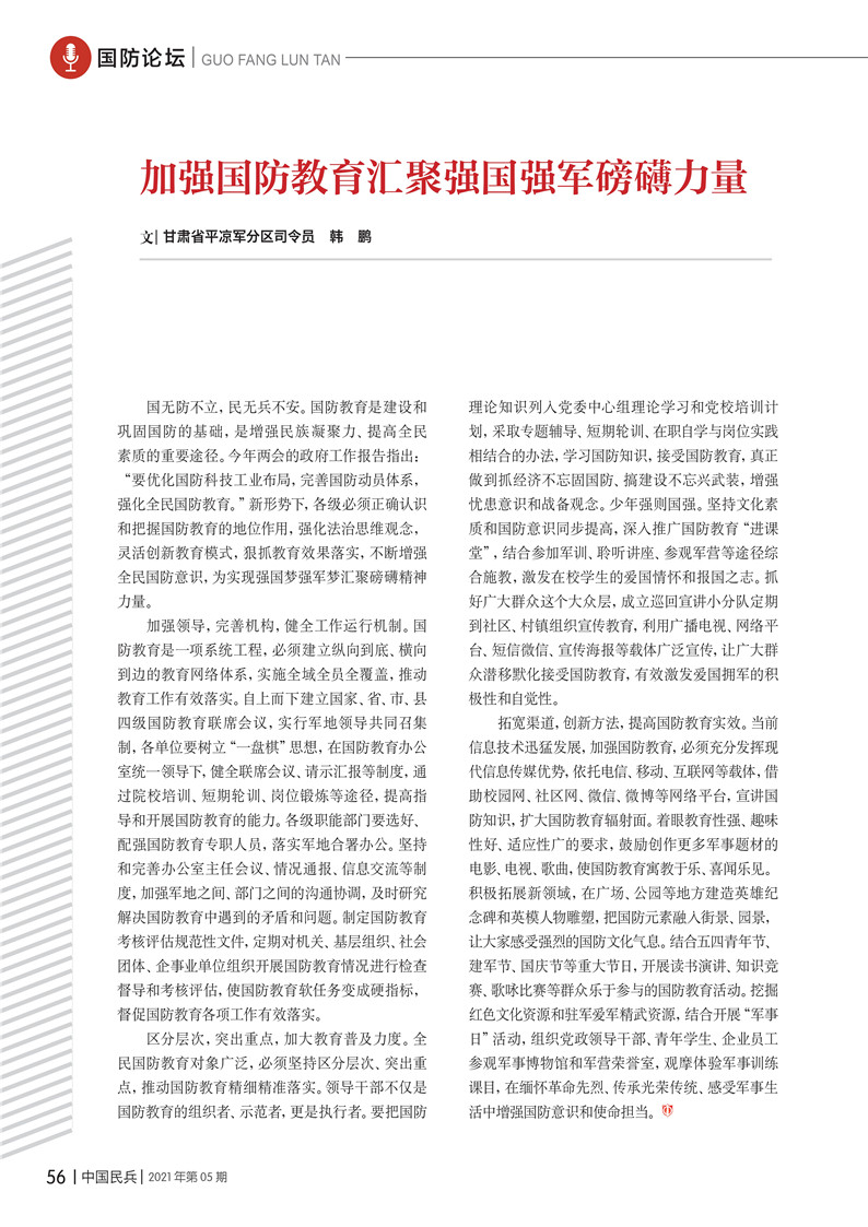 加強(qiáng)國(guó)防教育匯聚強(qiáng)國(guó)強(qiáng)軍磅礴力量
