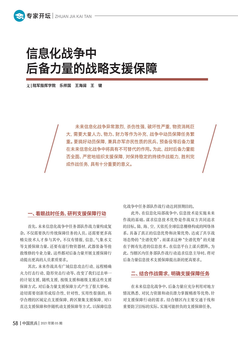 信息化戰(zhàn)爭(zhēng)中后備力量的戰(zhàn)略支援保障