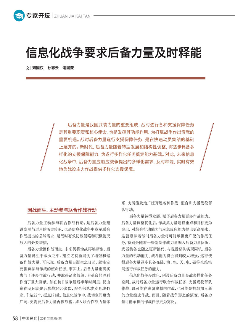 信息化戰(zhàn)爭(zhēng)要求后備力量及時(shí)釋能